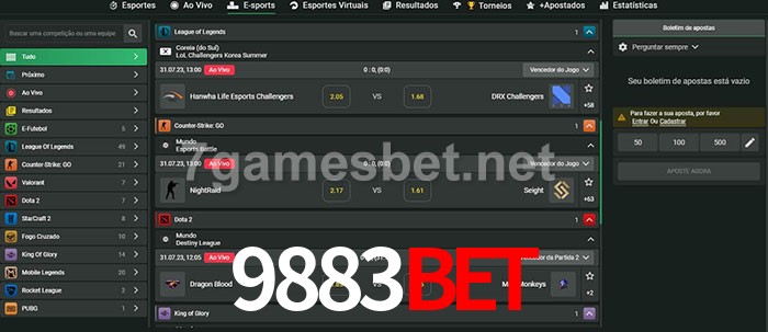 O 9883bet oferece uma grande seleção de opções de apostas em e-sports com probabilidades competitivas